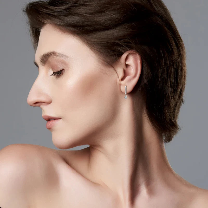 Everyday sparkle with a secure, comfortable fit. These 925 sterling silver moissanite huggie hoop earrings add subtle brilliance to daily looks while staying light and easy to wear—perfect for work, evenings out, or gifting.
