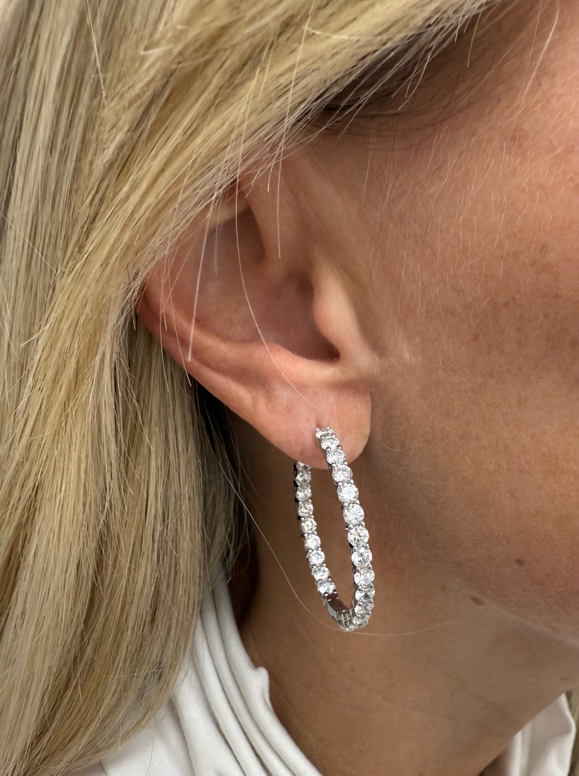 Versatile, bold yet light weight inside out hoops that transition seamlessly from daylight to evening wear. Featuring precisely cut 2.5mm stones, these pieces deliver bold sparkle with understated elegance, the perfect accessory for those who refuse to choose between day and night style.