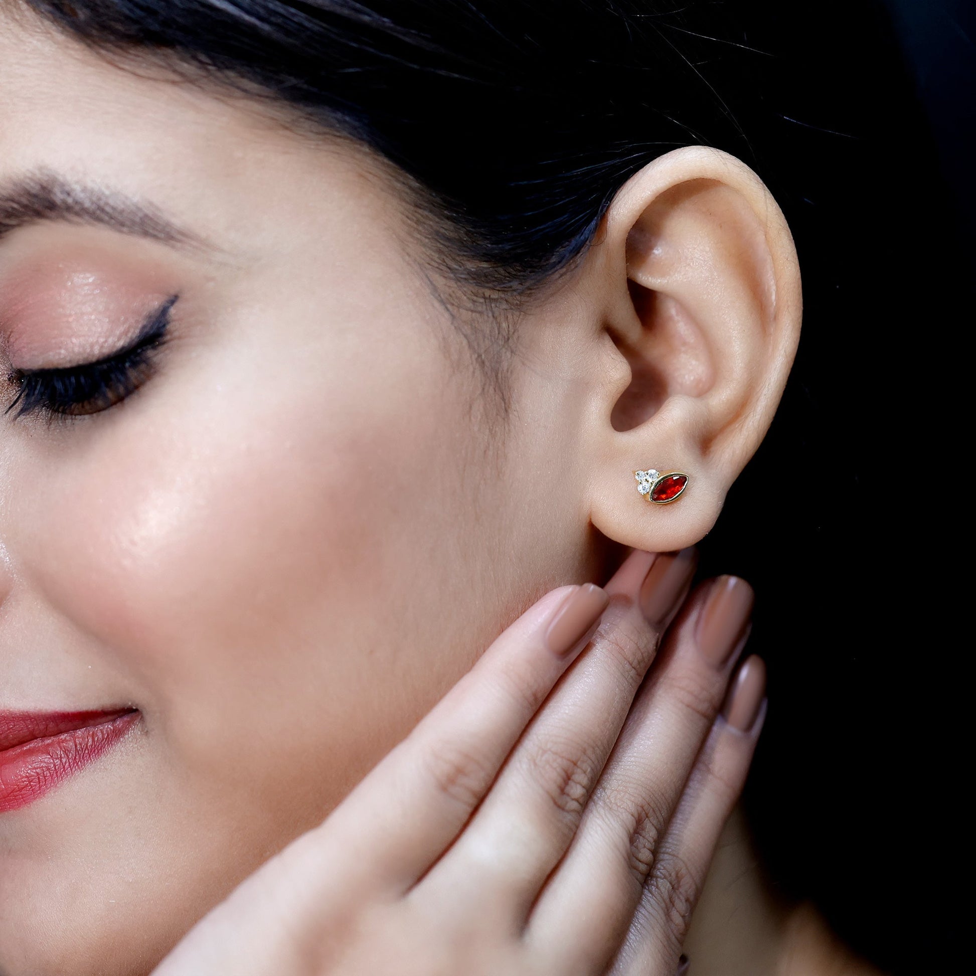 Feel the vibrant energy of these Fire Opal Stud Earrings, which bring bold elegance to your jewelry collection. Thoughtfully crafted in yellow gold plated silver, these Simple Earrings feature a stunning 3X6 MM marquise cut natural Fire Opal, set in bezel setting. A delicate trio of round cut lab grown diamonds accent one side of each earring, adding just the right amount of sparkle. With EF color and VS clarity, these diamonds beautifully highlight the glowing AAA quality opal, creating a lovely contrast that feels both modern and timeless. Secured with comfortable screw back closures, these Fire Opal Earrings are perfect for daily wear. Whether you are dressing up for a special occasion or adding a touch of color to your everyday outfit, they offer effortless elegance with a unique twist. As the birthstone for October, Fire Opal makes these Marquise Earrings a meaningful gift for someone special, or a personal treat if you love bold, colorful gems. Their simple design makes them easy to pair with anything, from workwear to weekend outfits. Full of warmth, charm, and character, these Fire Opal and Diamond Earrings are a beautiful way to wear your birthstone or simply enjoy a pop of fiery color with timeless style.